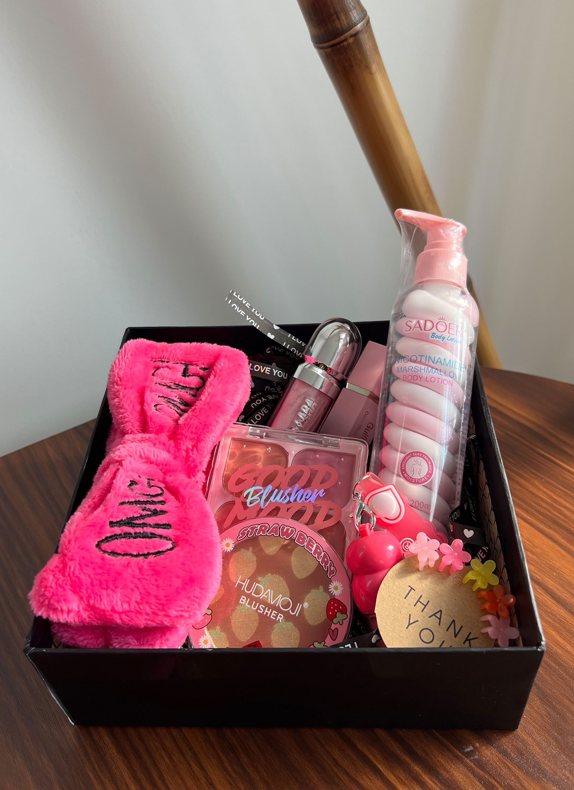 لوسیون مارشمالو آبرسان قوی / رژگونه مایع طرح شیگلم / رژ مایع شاین دار کیکو / هایلایتر توت فرنگی هدی بیوتی / رژ مایع حجم دهنده عروسکی آویزدار /هدبند / کلیپس مینی 5 عددی