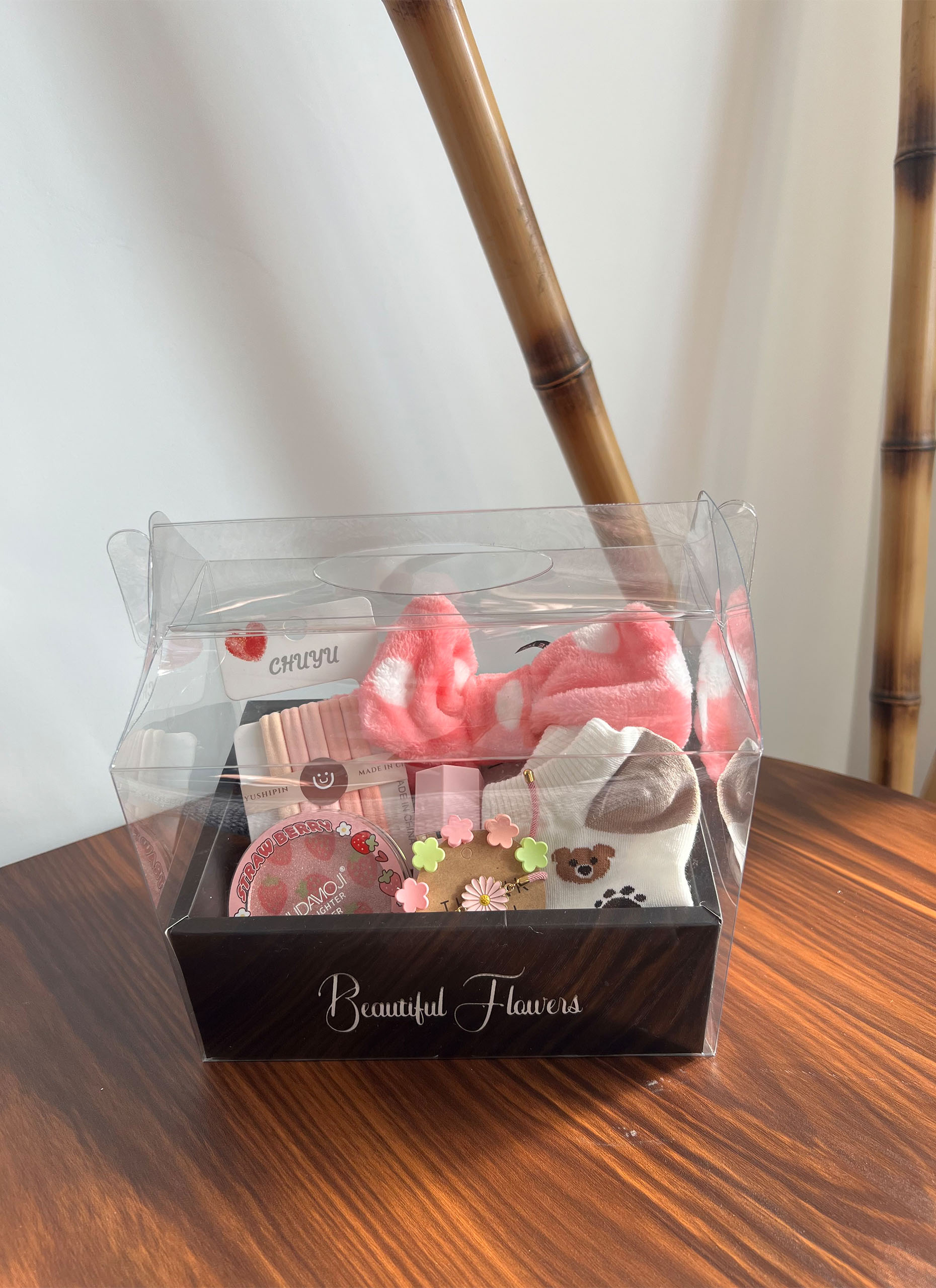 رژگونه مایع طرح شیگلم / هایلایتر توت فرنگی هدی بیوتی / پک کش 4 عددی /هدبند / جوراب / دستبند بابونه / کلیپس مینی 5 عددی