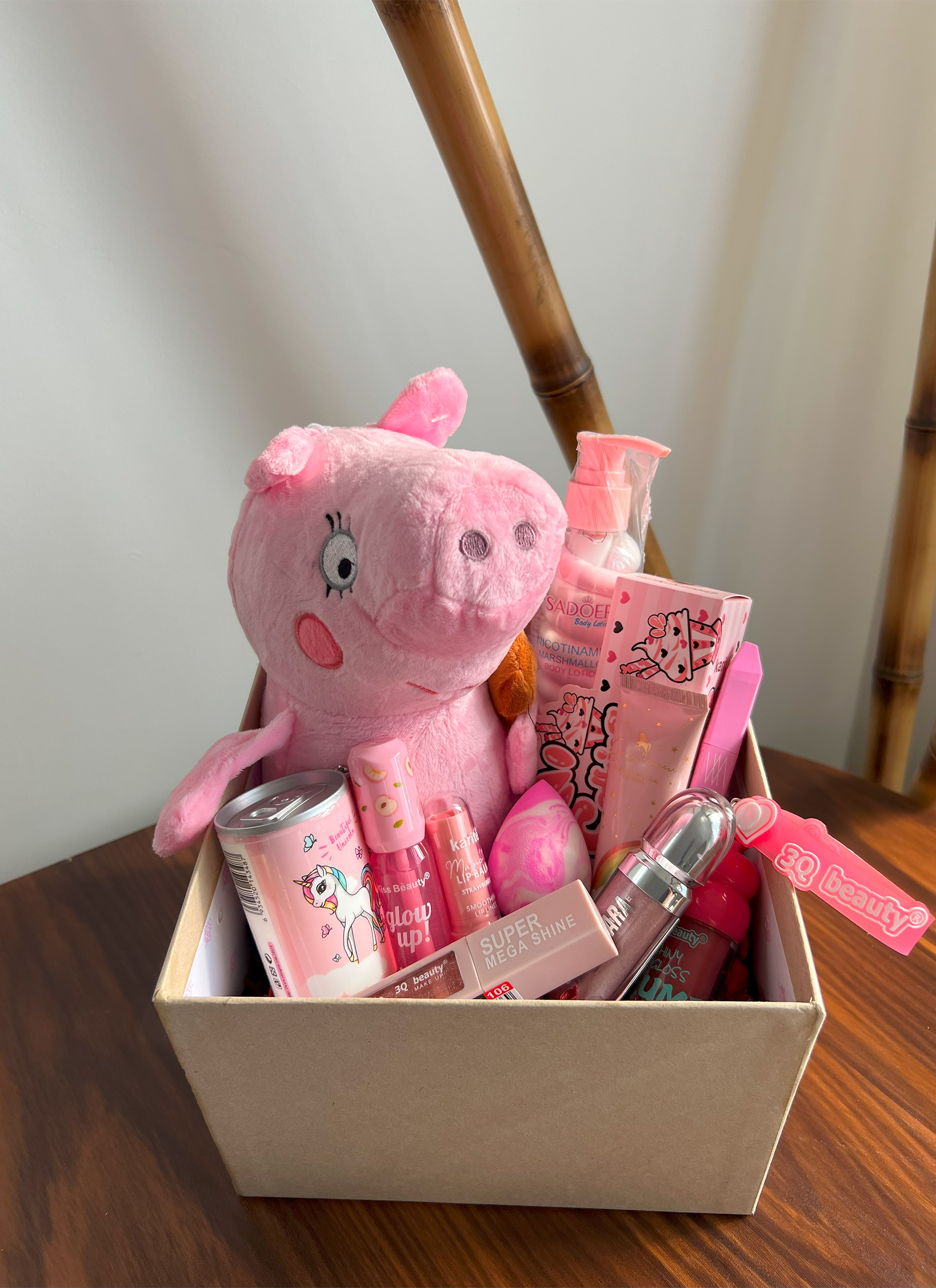 این پک شامل : عروسک پپا / لوسیون مارشمالو / اسپری فیکساتور / دستمال مرطوب یونیکورن / لیپ گلاس کیس بیوتی / رژ لب شاین میبلین / رژلب شاین کیکو / رژ لب حجم دهنده آویز دار عروسکی /بیوتی بلندر / خط چشم ماژیکی / کرم دست
